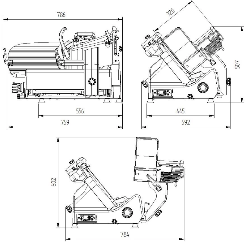 • De acuerdo con las directivas europeas 2006/42 / CE (directiva maquinas); 1935/2004 / CE (directiva materiales alimenticios); 10/2011 (directiva plástico para alimentos); 2006/95 / CE (directiva baja tensión); 2011/65 / UE (directiva RoHS); A 1974: 1998 (cortadoras - requisitos higiene y seguridad); EN 60204-1 (seguridad maquina); A 55014 (compatibilidad electromagnética)