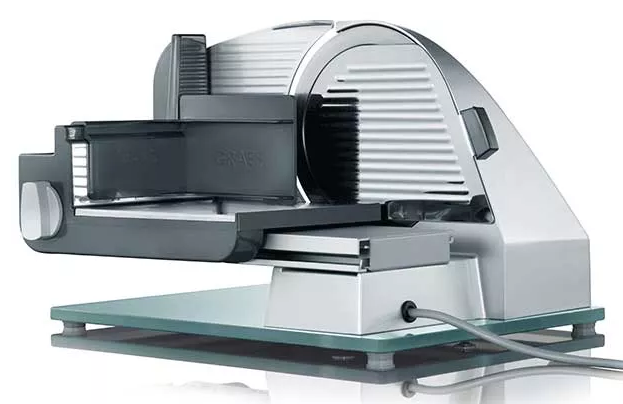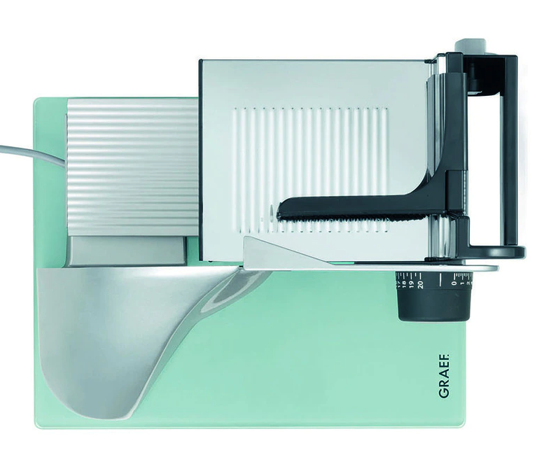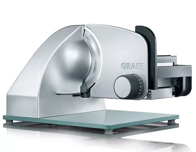 La nueva serie doméstica de cortadoras es ideal para familias: fáciles de utilizar, seguras y con la calidad y fiabilidad de la marca GRAEF. Cortadora en voladizo totalmente metálica, con placa base de cristal irrompible con una cuchilla de acero inoxidable de 170mm de diámetro permite regular con precisión los cortes de 0 a 20mm. Permite taller embutidos, quesos y verduras.