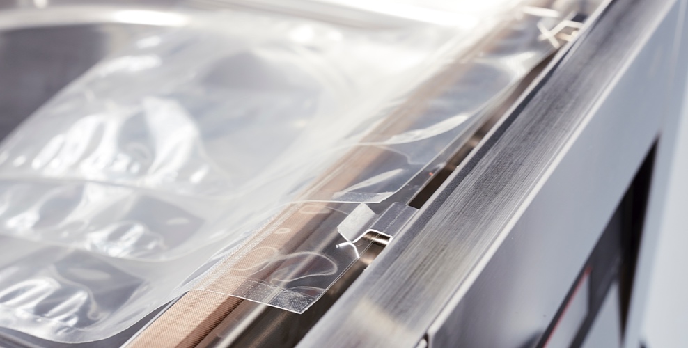 Gracias al diseño especial de la barra de soldadura, tienes la posibilidad de envasar dos bolsas de vacío superpuestas, consiguiendo un envasado perfecto en las dos y reduciendo al 50% en tu tiempo de producción.