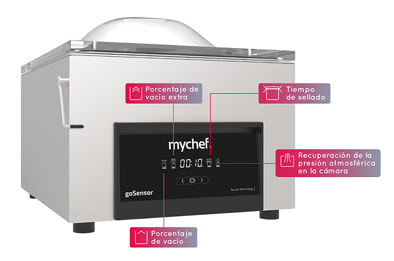 Con su tecnología de Mychef goSensor efectúa un trabajo perfecto y sin esfuerzo sea cual sea el alimento, líquido o material introducido en la bolsa.